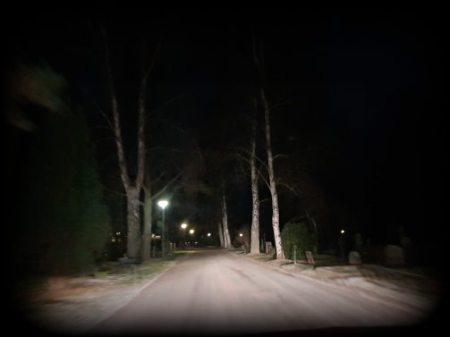 Sitter jag i vår bil på begravningsplatsen