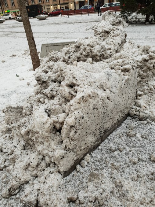 Grå och smutsig snö ligger i högar