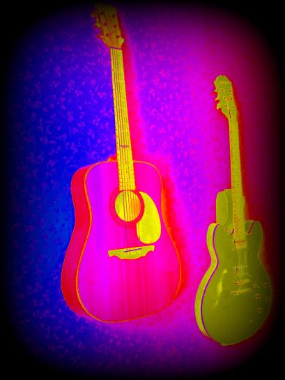 Gitarrerna glänser av ljuset ifrån gatlyktorna