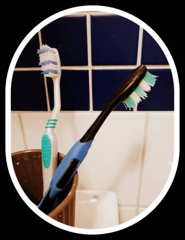 I mitt badrum ligger en ny tandborste