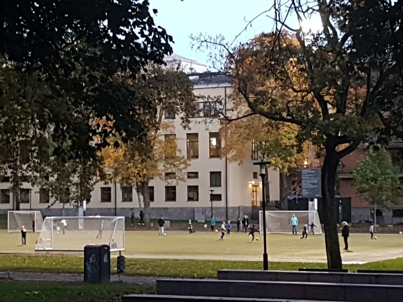 Bakom dem förtätas staden av vidriga kontorskomplex